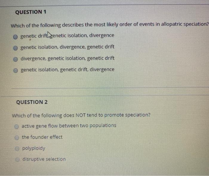 Biology questions and answers. A mutation makes certain frogs mate two days earlier in the season. Here we are discussing various differences between allopatric and sympatric speciation.